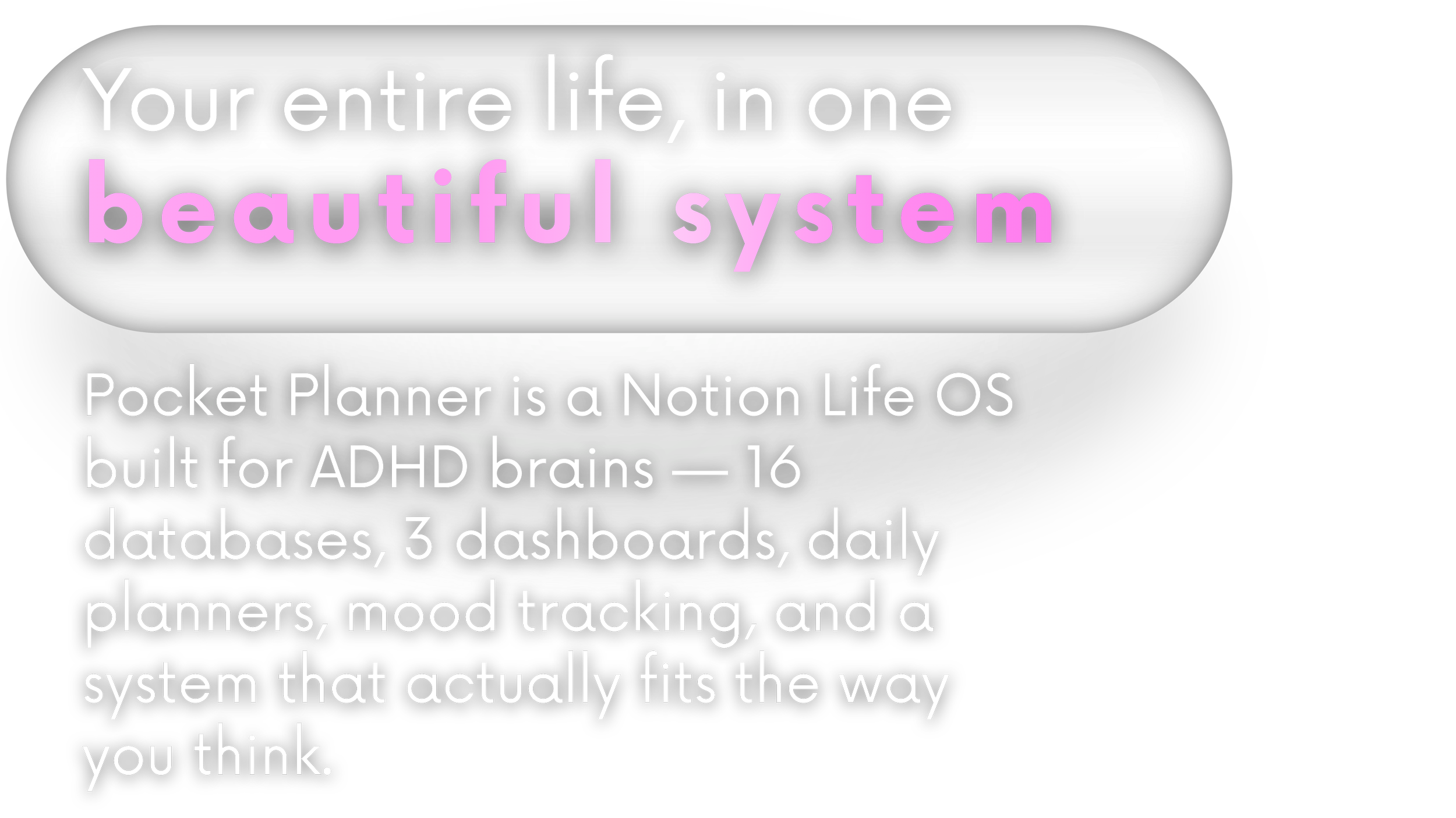 Daily Dashboard, Work Hub, Personal HQ โ your entire life organized into three command centers with live rainbow progress on everything.
